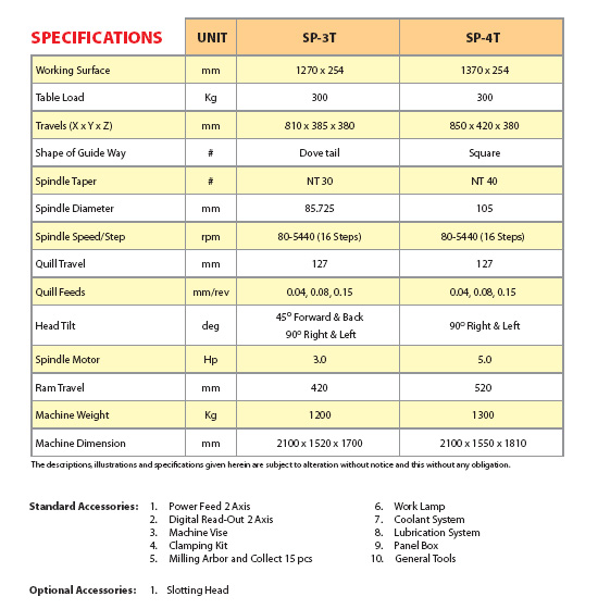 Unique Inversion type milling head, high, precision, easy operation and brake.